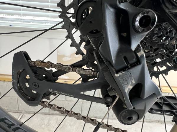 Size: Medium Color: Blue Features: With Hydraulic Brake Frame Material: Aluminum Number of Speeds: 12 speed Suspension Type: Front Suspension Type: Mountain Asking $1,000 Pedals not included