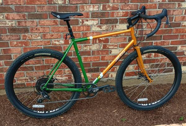 If you know All-City, you know the Gorilla Monsoon. The "Tangerine Evergreen" bike in stock is a 52cm. All other sizes in this color (except 55cm) are still available however, and can be ready to go...