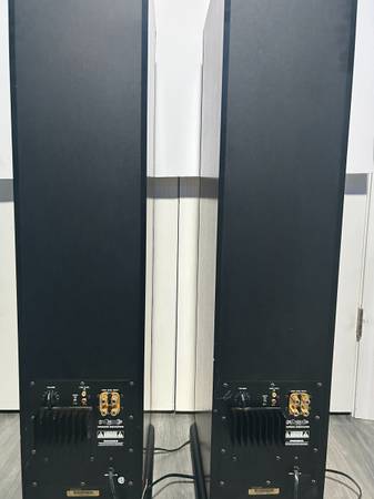 Polk RT2000I Floor standing speakers with built in powered subwoofers. These speakers produce a powerful sound and would make a welcome addition to anyone's home theater or two-channel setup. Finished in cherrywood. Excellent condition. No refunds, no returns, pickup only. Thanks for looking.