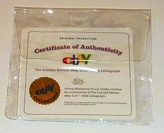 Limited Edition Original 2005 Ebay Live 10th Year Framed Litho w/ COA Outstanding RARE collectible with a VERY low number - ( #18 / 250 ) and in excellent condition!! Best of all, this item comes...
