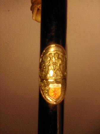 Rare, 18th Century, Jet black walking cane, 36 inch, with ivory elephant head handle. Has Scotland Badge, rubber Ferrule.