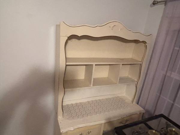 This is a standalone dresser with mirror …plus another dresser with a bookshelf above it. They both match The two part dresser and shelving above it measure ….bottom piece:..44 1/2 “ wide…..x 17”...