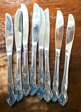 The Orleans Silverware Stainless set includes 52 pieces of vintage/retro style flatware made of stainless steel. The set includes knives, forks, serving spoons, serving forks, and spoons, all in a glossy silver finish. The handles are also made of stainless steel, adding a touch of elegance to your dining experience. Made in Japan, this set is perfect for adding a touch of sophistication to your table setting.