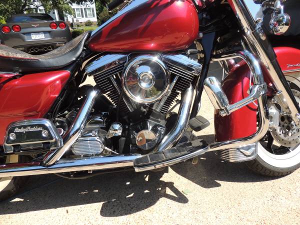 You would be hard pressed to find a cleaner, well-kept 1996 Big Twin Road King in this condition! I have owned this bike since 2008 and am the 2nd owner. It comes with a MIKUNI HRS Carb Kit for added performance. This Bike starts up all the time with NO PROBLEMS and runs Great! This bike has 18,862 original miles and always had maintenance at either Bayside, Southside or Oceana Cycles. Comes with dual air-horns, Interstate Battery, and everything else is standard for that year. It also comes with the Harley-Davidson Official Factory Manual. This bike is between Excellent and Very Good Condition! If interested or have questions, send me a message. The price is according to J. D. Power and Cycle Trader sites.