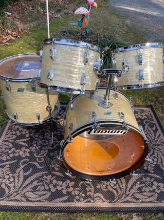 Vintage 3-ply Ludwig Drum Set. 22 bass 18, 14, 13 tomsPickup at kempsville library in Virginia Beach or Bingo City in Yorktown.