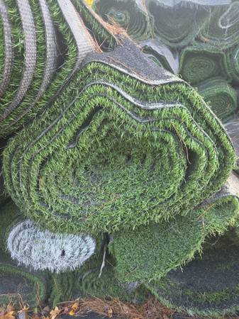 Massive 7' by 45' rolls of turf used from a foot ball field they have paint lines but are in excellent usable condition 315 square foot per roll, Rolls have a small amount of infill left and weigh about 1000 to 1200 pounds per roll. Rolls are from a Foot ball