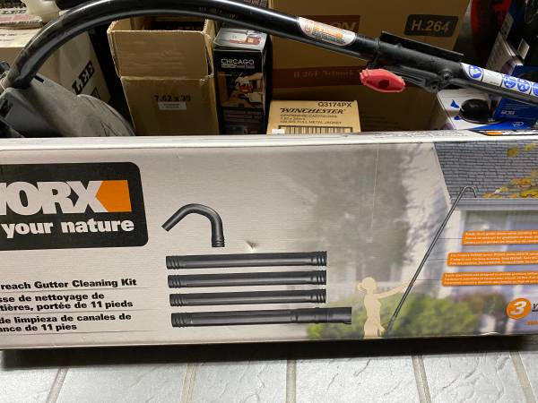 New in the box. Can hook up to leaf blower and reach the first row of gutters on your home! $25.00